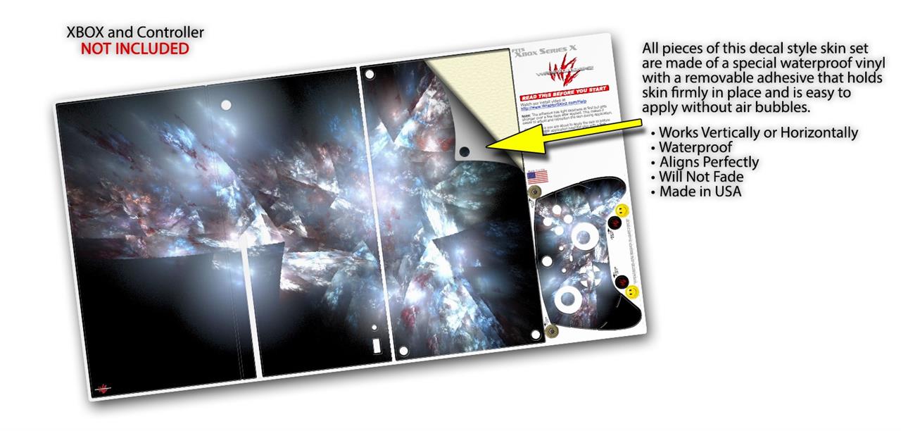 WraptorSkinz® skin wraps for the XBOX Series X gaming console and controller reelase November 2020 are printed using superb photo quality designs and vibrant colors printed with special fade resistant inks that last even in direct sun for years. WraptorSkinz are a composite of two layers of commercial grade materials. The bottom layer is a soft, flexible vinyl with a special removable adhesive that is easily positioned, applied without air bubbles. Next we print the bottom layer with UV protected, fade resistant inks that deliver superb photo quality designs in vibrant colors. Last, we bond a professional grade laminate over the entire skin adding a glossy protective finish. This product is not affiliated with or endorsed by Microsoft or the XBOX brand.
