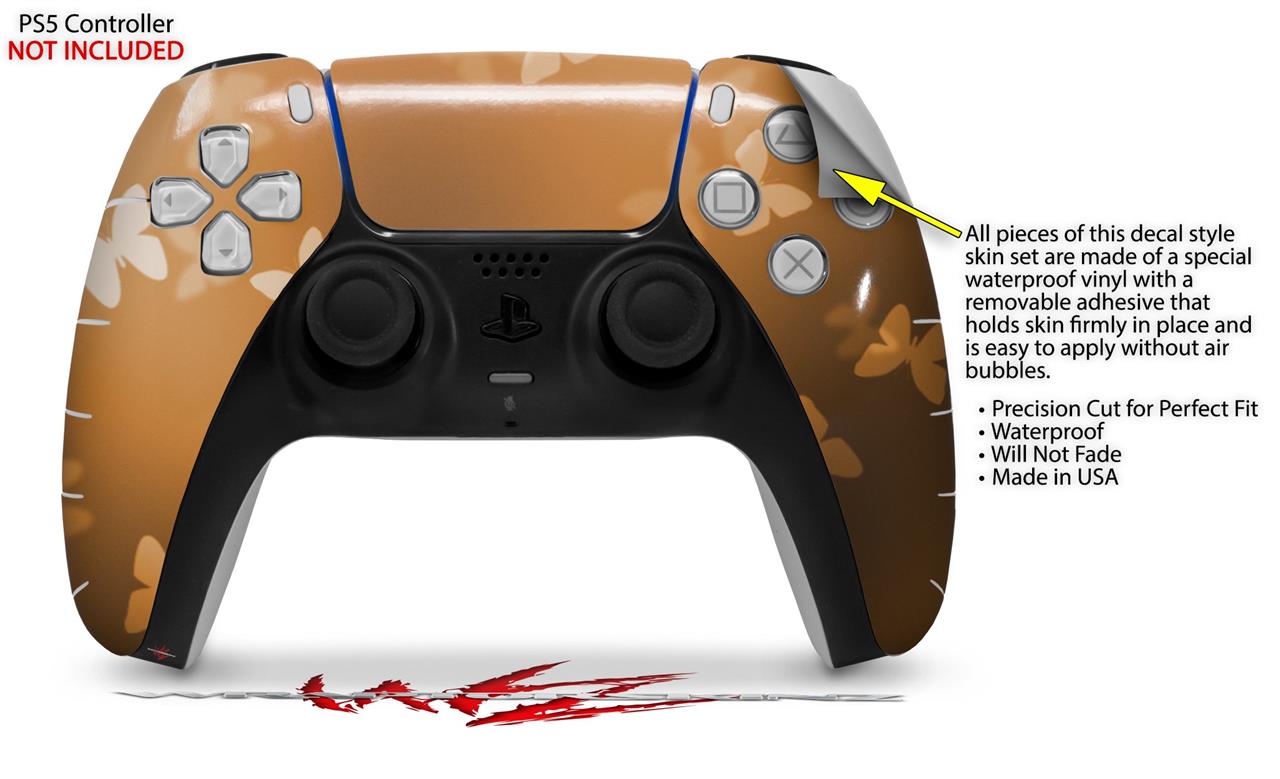 WraptorSkinz Skin Wrap compatible with the Sony PS5 DualSense Controller Bokeh Butterflies Orange (CONTROLLER NOT INCLUDED)