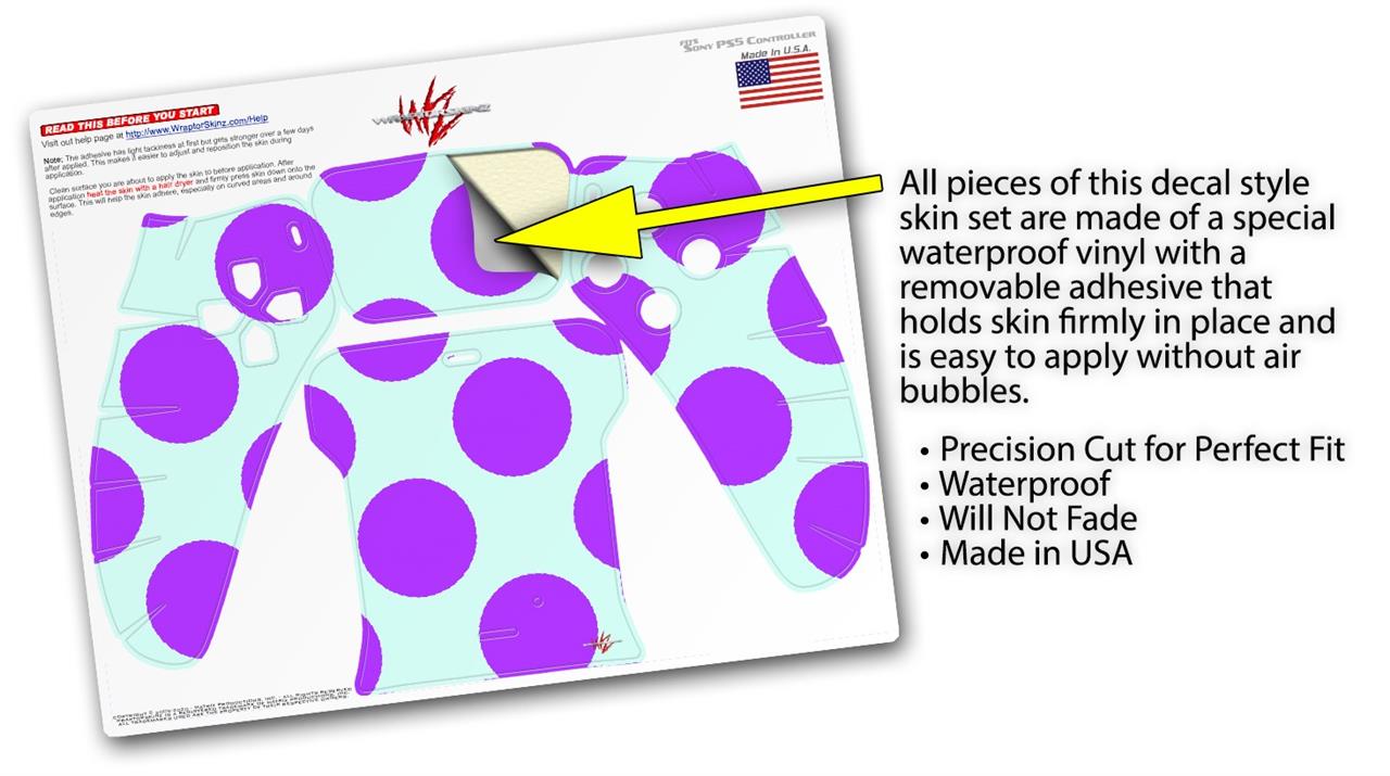 WraptorSkinz Skin Wrap compatible with the Sony PS5 DualSense Controller Kearas Polka Dots Purple And Blue (CONTROLLER NOT INCLUDED)