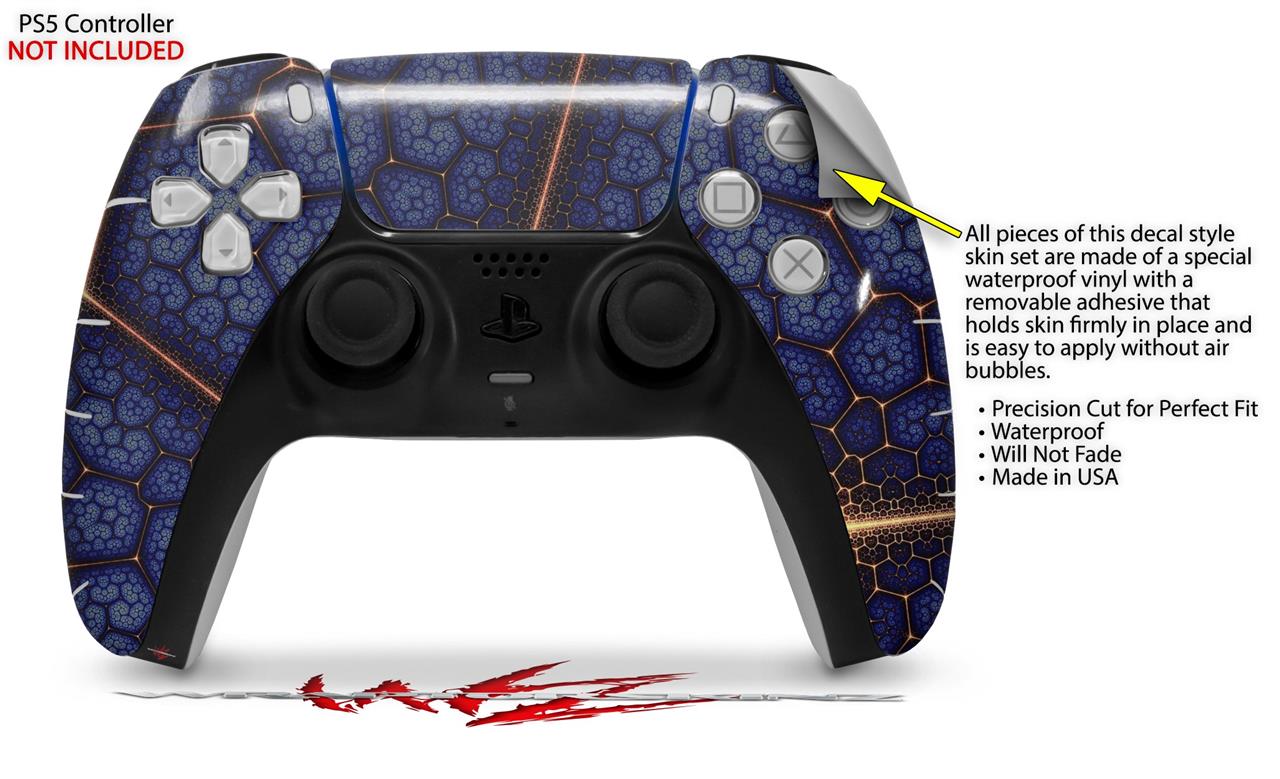 WraptorSkinz® skin wraps for the Sony Playstation 5 controller are printed using superb photo quality designs and vibrant colors printed with special fade resistant inks that last even in direct sun for years. WraptorSkinz are a composite of two layers of commercial grade materials. The bottom layer is a soft, flexible vinyl with a special removable adhesive that is easily positioned, applied without air bubbles. Next we print the bottom layer with UV protected, fade resistant inks that deliver superb photo quality designs in vibrant colors. Last, we bond a professional grade laminate over the entire skin adding a glossy protective finish. This product is not affiliated with or endorsed by Sony or the Playstation brand.