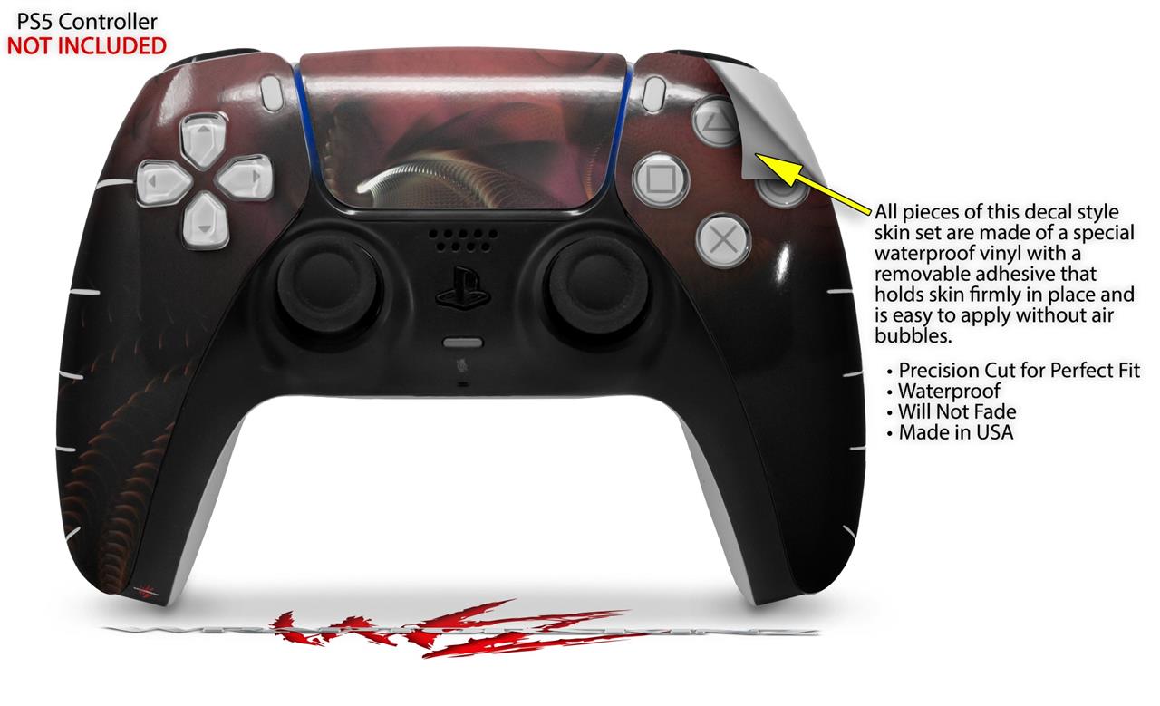 WraptorSkinz® skin wraps for the Sony Playstation 5 controller are printed using superb photo quality designs and vibrant colors printed with special fade resistant inks that last even in direct sun for years. WraptorSkinz are a composite of two layers of commercial grade materials. The bottom layer is a soft, flexible vinyl with a special removable adhesive that is easily positioned, applied without air bubbles. Next we print the bottom layer with UV protected, fade resistant inks that deliver superb photo quality designs in vibrant colors. Last, we bond a professional grade laminate over the entire skin adding a glossy protective finish. This product is not affiliated with or endorsed by Sony or the Playstation brand.