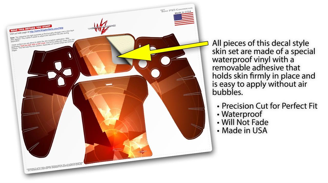 WraptorSkinz® skin wraps for the Sony Playstation 5 controller are printed using superb photo quality designs and vibrant colors printed with special fade resistant inks that last even in direct sun for years. WraptorSkinz are a composite of two layers of commercial grade materials. The bottom layer is a soft, flexible vinyl with a special removable adhesive that is easily positioned, applied without air bubbles. Next we print the bottom layer with UV protected, fade resistant inks that deliver superb photo quality designs in vibrant colors. Last, we bond a professional grade laminate over the entire skin adding a glossy protective finish. This product is not affiliated with or endorsed by Sony or the Playstation brand.