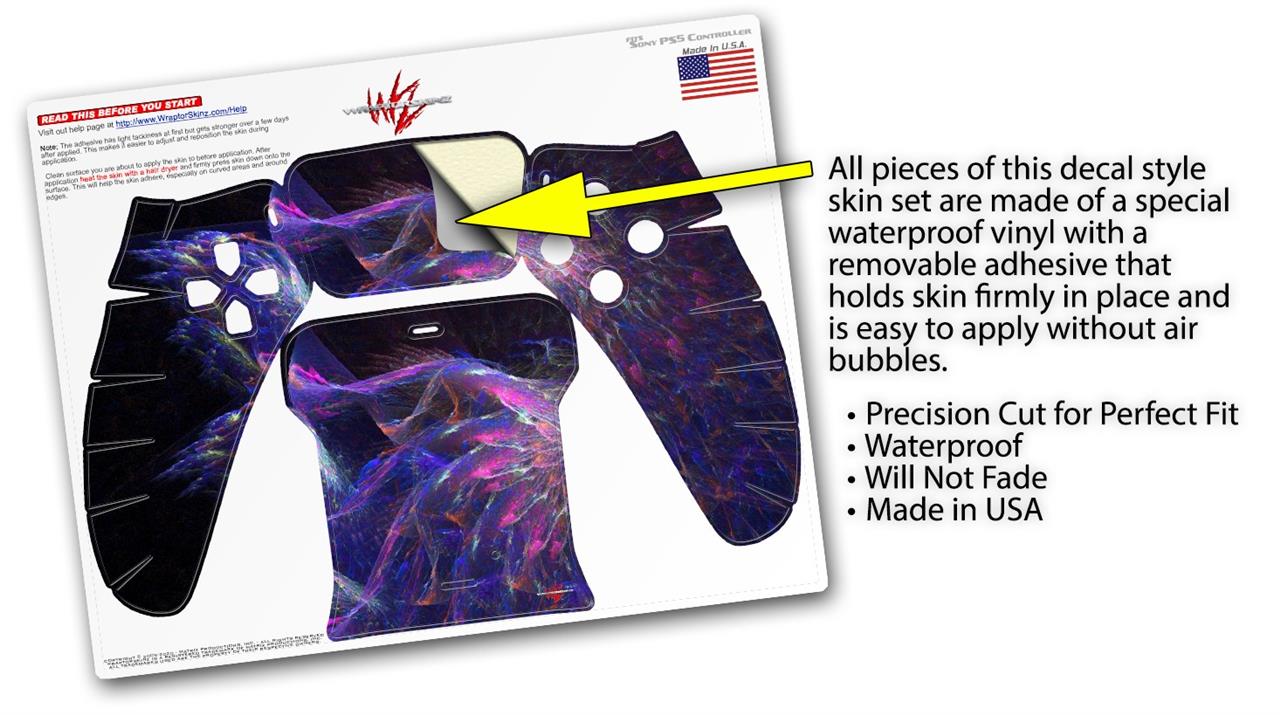 WraptorSkinz® skin wraps for the Sony Playstation 5 controller are printed using superb photo quality designs and vibrant colors printed with special fade resistant inks that last even in direct sun for years. WraptorSkinz are a composite of two layers of commercial grade materials. The bottom layer is a soft, flexible vinyl with a special removable adhesive that is easily positioned, applied without air bubbles. Next we print the bottom layer with UV protected, fade resistant inks that deliver superb photo quality designs in vibrant colors. Last, we bond a professional grade laminate over the entire skin adding a glossy protective finish. This product is not affiliated with or endorsed by Sony or the Playstation brand.