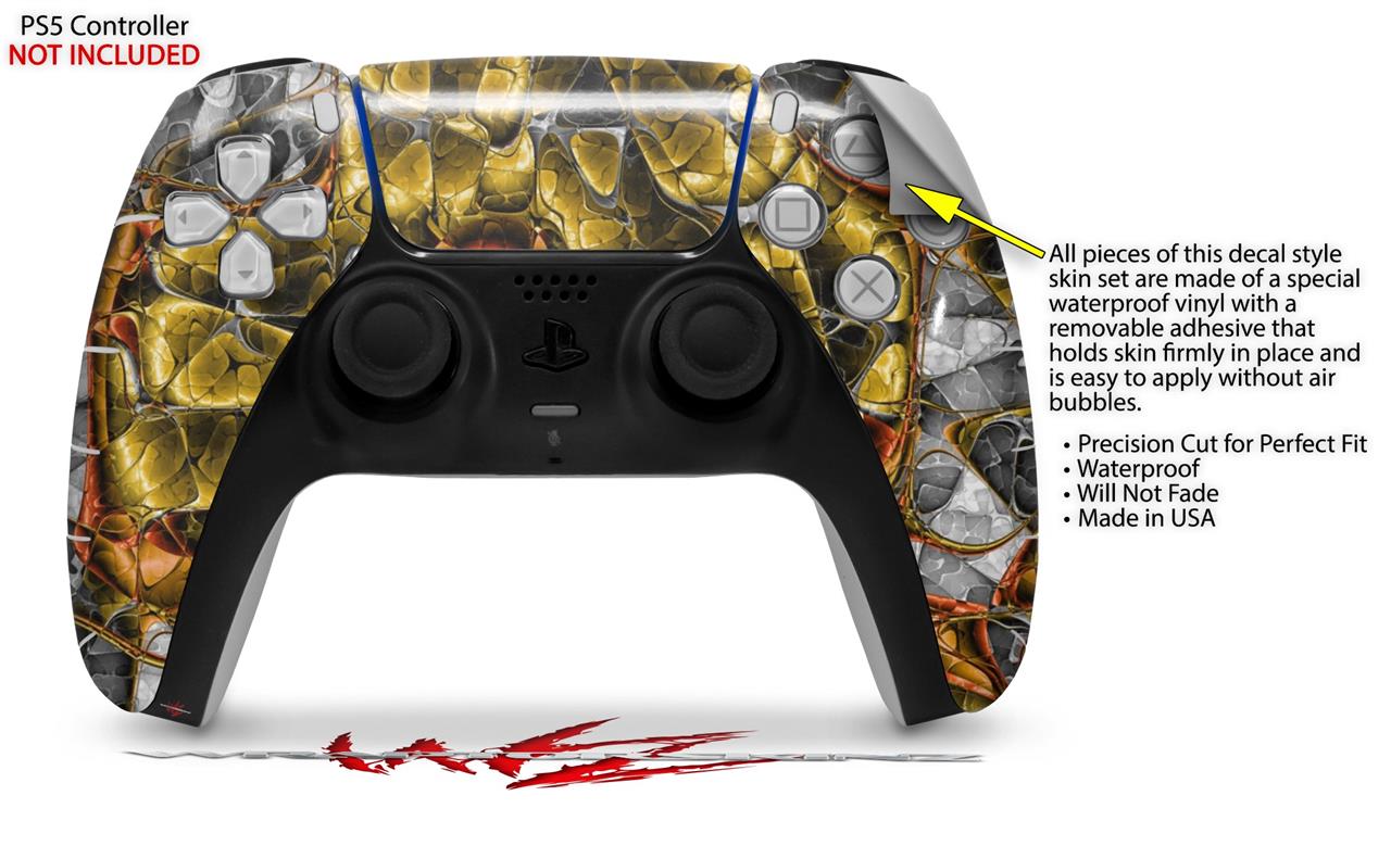 WraptorSkinz® skin wraps for the Sony Playstation 5 controller are printed using superb photo quality designs and vibrant colors printed with special fade resistant inks that last even in direct sun for years. WraptorSkinz are a composite of two layers of commercial grade materials. The bottom layer is a soft, flexible vinyl with a special removable adhesive that is easily positioned, applied without air bubbles. Next we print the bottom layer with UV protected, fade resistant inks that deliver superb photo quality designs in vibrant colors. Last, we bond a professional grade laminate over the entire skin adding a glossy protective finish. This product is not affiliated with or endorsed by Sony or the Playstation brand.