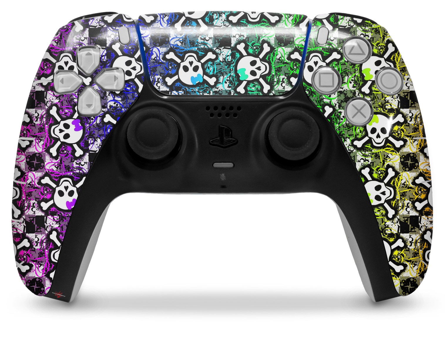 WraptorSkinz Skin Wrap compatible with the Sony PS5 DualSense Controller Splatter Girly Skull Rainbow (CONTROLLER NOT INCLUDED)