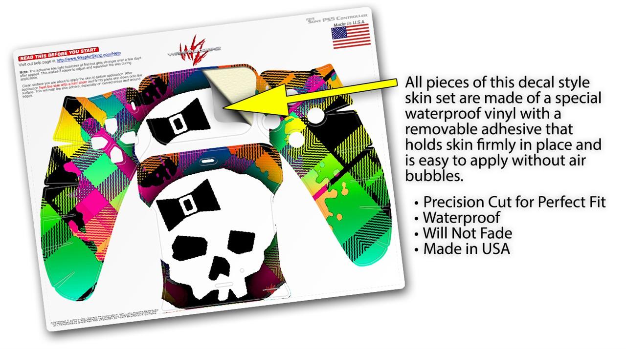 WraptorSkinz® skin wraps for the Sony Playstation 5 controller are printed using superb photo quality designs and vibrant colors printed with special fade resistant inks that last even in direct sun for years. WraptorSkinz are a composite of two layers of commercial grade materials. The bottom layer is a soft, flexible vinyl with a special removable adhesive that is easily positioned, applied without air bubbles. Next we print the bottom layer with UV protected, fade resistant inks that deliver superb photo quality designs in vibrant colors. Last, we bond a professional grade laminate over the entire skin adding a glossy protective finish. This product is not affiliated with or endorsed by Sony or the Playstation brand.