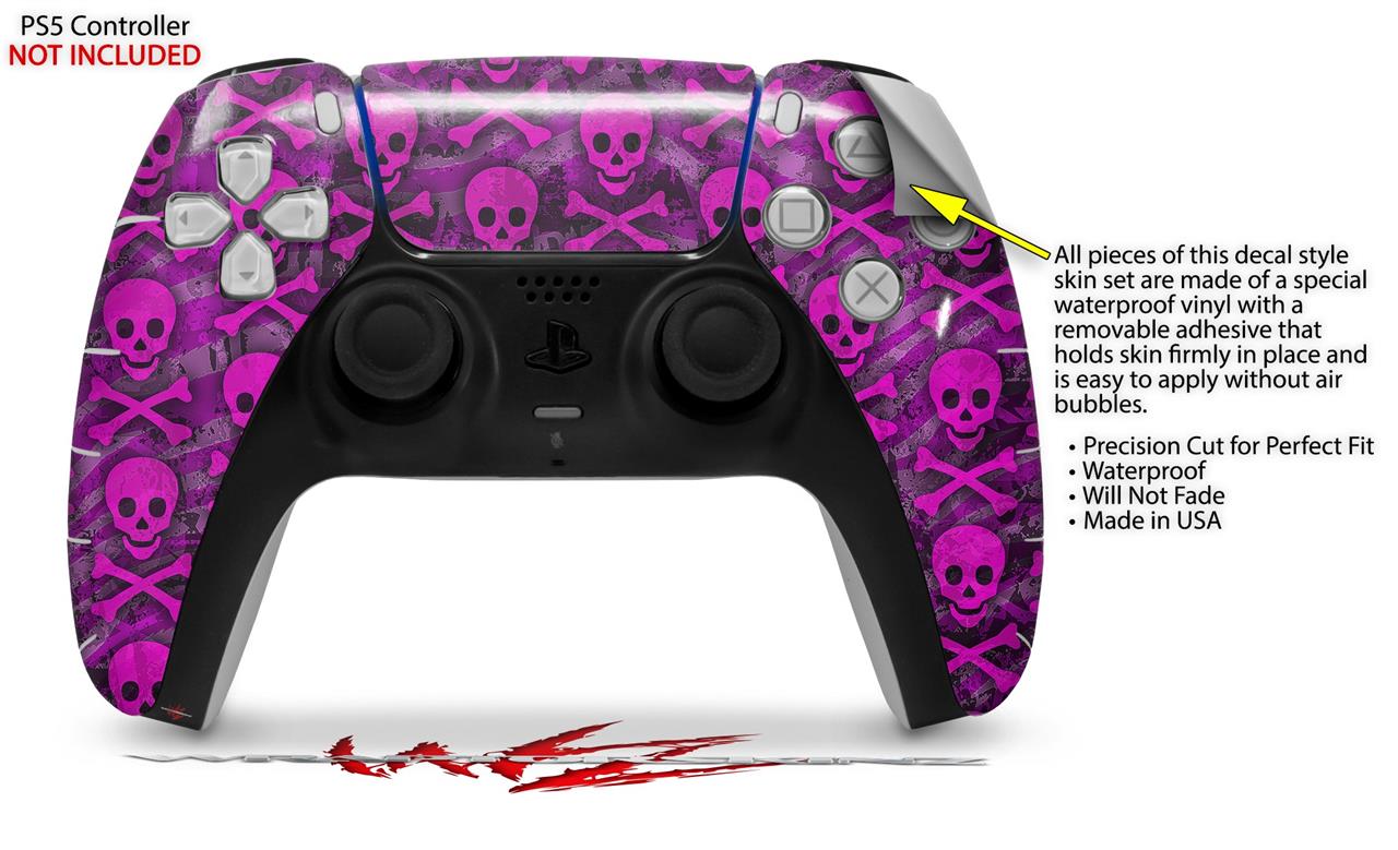 WraptorSkinz Skin Wrap compatible with the Sony PS5 DualSense Controller Pink Skull Bones (CONTROLLER NOT INCLUDED)