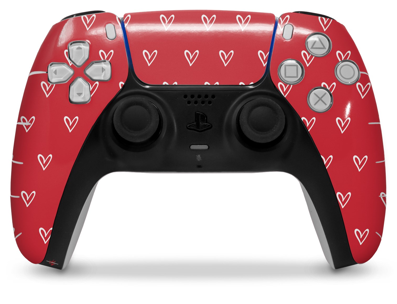 WraptorSkinz Skin Wrap compatible with the Sony PS5 DualSense Controller Hearts Red On White (CONTROLLER NOT INCLUDED)