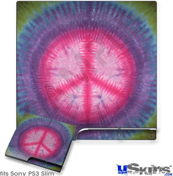 Decal Skin compatible with Sony PS3 Slim Tie Dye Peace Sign 110