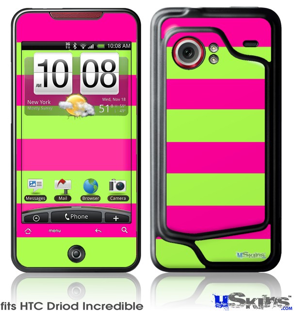 HTC Droid Incredible Skin - Psycho Stripes Neon Green and Hot Pink