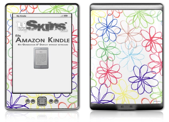 Kearas Flowers on White - Decal Style Skin (fits 4th Gen Kindle with 6inch display and no keyboard)