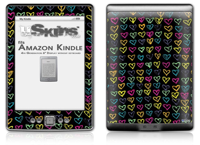 Kearas Hearts Black - Decal Style Skin (fits 4th Gen Kindle with 6inch display and no keyboard)