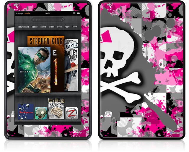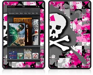 Amazon Kindle Fire (Original) Decal Style Skin - Girly Pink Bow Skull