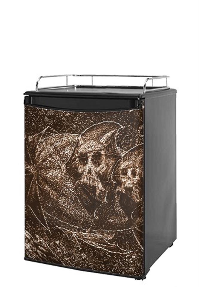 Installation Instructions: Required Tools: Sharp Utility Knife. Our refrigerator skins are made so that one size fits most medium size dorm and keg fridges. This means the skins are slightly larger then most medium size dorm and keg fridges and will require trimming to fit. This refrigerator skin wrap measures 28 3/4in x 41in. Please measure your fridge door to make sure this skin will cover not only the face of the door but wrap around the sides as well. uSkinsTM self adhering vinyl skins wrap. Our skins are a composite of layered commercial grade vinyls. The bottom layer is a soft, flexible vinyl with a special removable adhesive that is easily positioned, applied without air bubbles, and effortlessly removed without leaving a sticky residue. uSkins are printed with the latest in UV protected inks that resist fading for up to 3 years even in direct sunlight. Finally we bond a professional grade laminate over the entire skin adding a professional glossy protective finish.