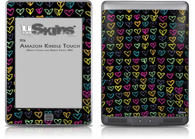 Kearas Hearts Black - Decal Style Skin (fits Amazon Kindle Touch Skin)