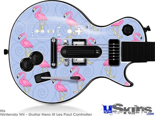 Guitar Hero III Wii Les Paul Skin - Flamingos on Blue