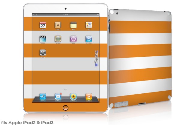 iPad Skin - Psycho Stripes Orange and White (fits iPad2 and iPad3)