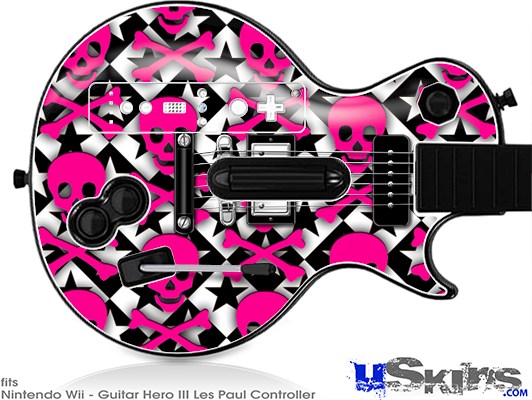 Guitar Hero III Wii Les Paul Skin - Pink Skulls and Stars
