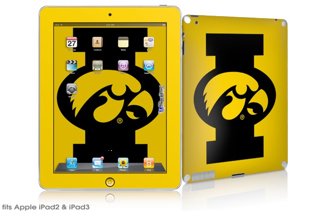 iPad Skin - Iowa Hawkeyes Tigerhawk Oval 02 Black on Gold (fits iPad2 and iPad3)