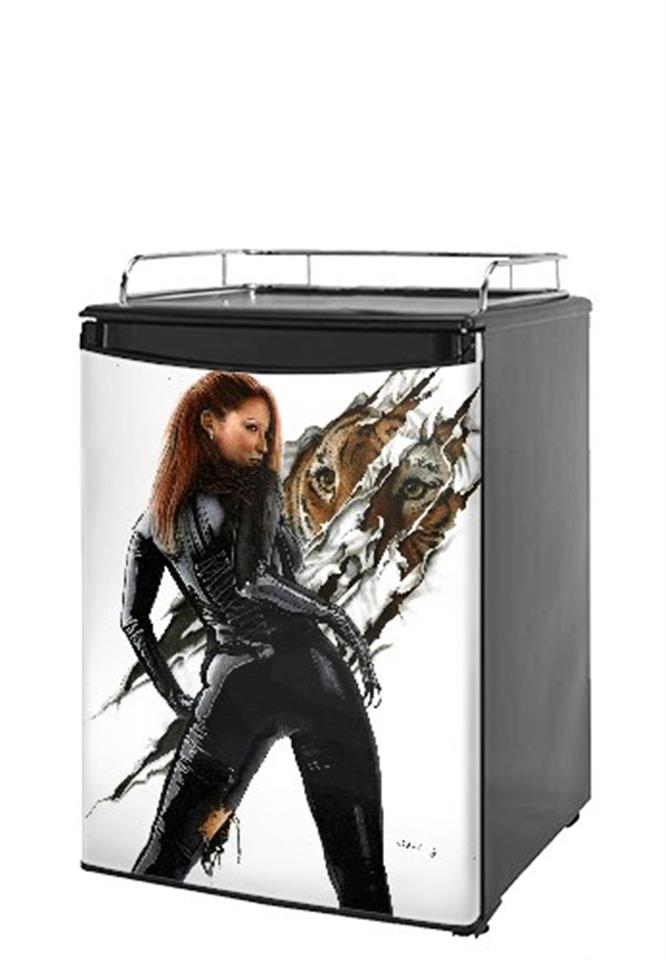 Installation Instructions: Required Tools: Sharp Utility Knife. Our refrigerator skins are made so that one size fits most medium size dorm and keg fridges. This means the skins are slightly larger then most medium size dorm and keg fridges and will require trimming to fit. This refrigerator skin wrap measures 28 3/4in x 41in. Please measure your fridge door to make sure this skin will cover not only the face of the door but wrap around the sides as well. uSkinsTM self adhering vinyl skins wrap. Our skins are a composite of layered commercial grade vinyls. The bottom layer is a soft, flexible vinyl with a special removable adhesive that is easily positioned, applied without air bubbles, and effortlessly removed without leaving a sticky residue. uSkins are printed with the latest in UV protected inks that resist fading for up to 3 years even in direct sunlight. Finally we bond a professional grade laminate over the entire skin adding a professional glossy protective finish.