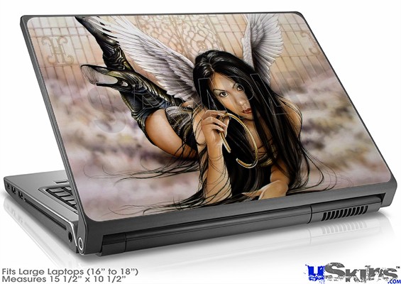 Laptop Skin fits most larger size laptops with 16" to 18" screens. Skin measures 15 1/2" wide x 10 1/2" high. uSkinsTM self adhering vinyl skins will look amazing on your electronic gear, printed at the highest resolution possible for unbeatable color and razor sharp clarity. Unlike bulky silicon, plastic or metal cases and faceplates, uSkins are designed to be thin and very tough. uSkins are a composite of layered commercial grade vinyls. The bottom layer is a soft, flexible vinyl with a special removable adhesive that is easily positioned, applied without air bubbles, and effortlessly removed without leaving a sticky residue. uSkins are printed with the latest in UV protected inks that resist fading for up to 3 years even in direct sunlight. Finally we bond a professional grade laminate over the entire skin adding a professional glossy protective finish.