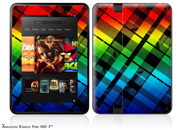 Rainbow Plaid Decal Style Skin fits 2012 Amazon Kindle Fire HD 7 inch