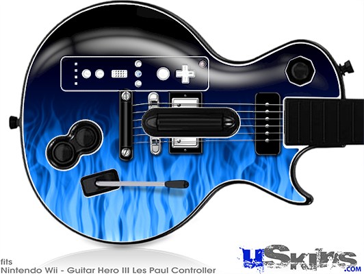 Guitar Hero III Wii Les Paul Skin - Fire Flames Blue