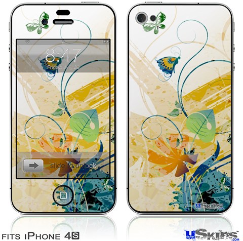 iPhone 4S Decal Style Vinyl Skin - Water Butterflies