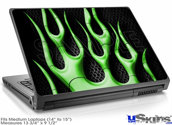 Laptop Skin (Medium) - Metal Flames Green