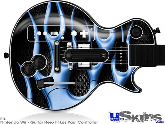 Guitar Hero III Wii Les Paul Skin - Metal Flames Blue