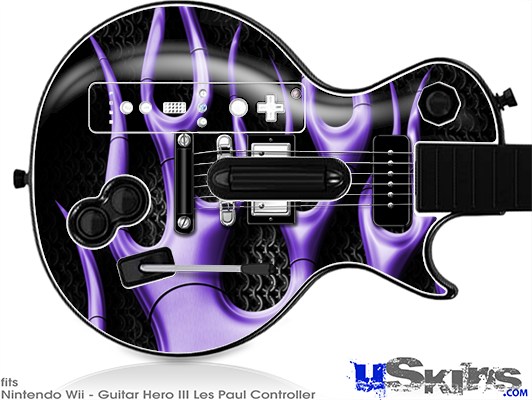 Guitar Hero III Wii Les Paul Skin - Metal Flames Purple