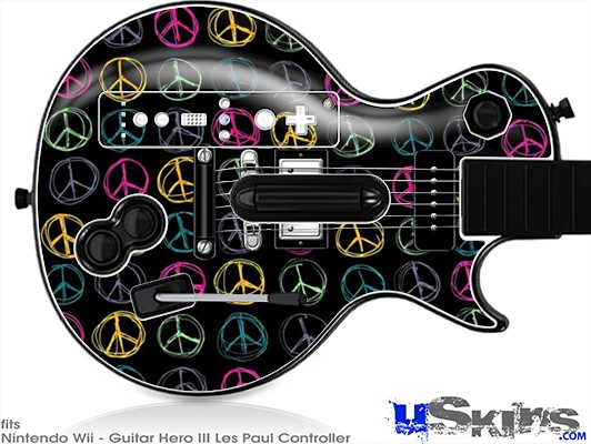 Guitar Hero III Wii Les Paul Skin - Kearas Peace Signs Black