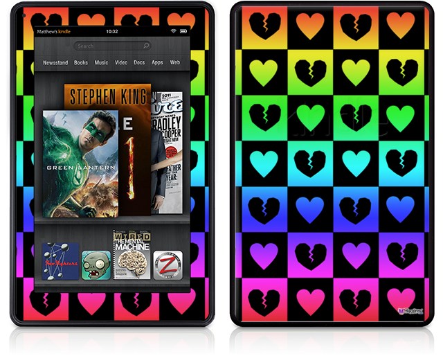 Amazon Kindle Fire (Original) Decal Style Skin - Love Heart Checkers Rainbow