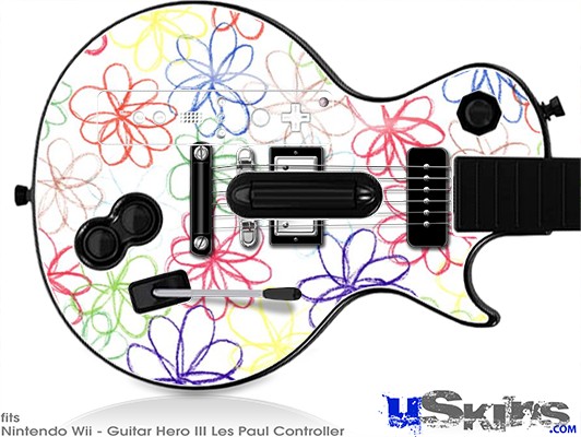 Guitar Hero III Wii Les Paul Skin - Kearas Flowers on White
