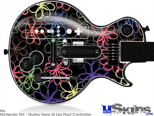 Guitar Hero III Wii Les Paul Skin - Kearas Flowers on Black