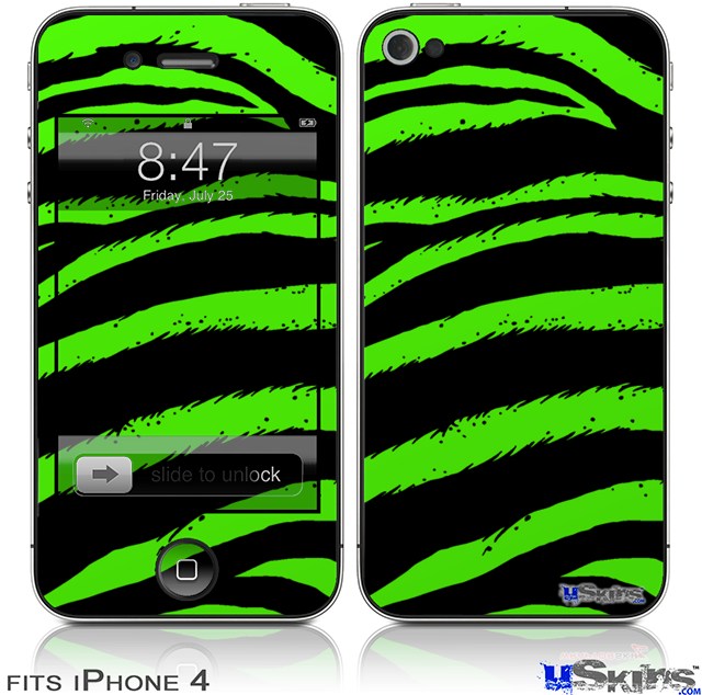 iPhone 4 Decal Style Vinyl Skin - Zebra Green (DOES NOT fit newer iPhone 4S)