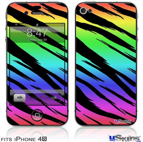 iPhone 4S Decal Style Vinyl Skin - Tiger Rainbow