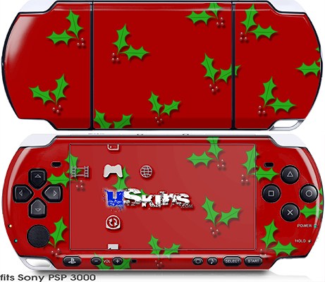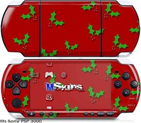 Sony PSP 3000 Skin - Holly Leaves on Red