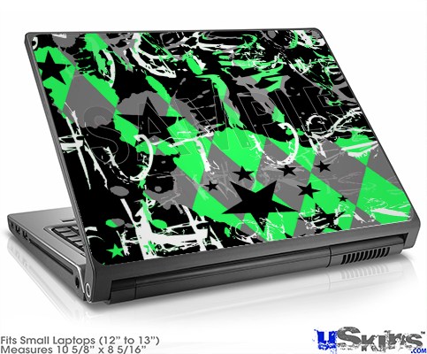 Laptop Skin fits most smaller size laptops with 12" to 13" screens. Skin measures 10 5/8" wide x 8 5/16" high. uSkinsTM self adhering vinyl skins will look amazing on your electronic gear, printed at the highest resolution possible for unbeatable color and razor sharp clarity. Unlike bulky silicon, plastic or metal cases and faceplates, uSkins are designed to be thin and very tough. uSkins are a composite of layered commercial grade vinyls. The bottom layer is a soft, flexible vinyl with a special removable adhesive that is easily positioned, applied without air bubbles, and effortlessly removed without leaving a sticky residue. uSkins are printed with the latest in UV protected inks that resist fading for up to 3 years even in direct sunlight. Finally we bond a professional grade laminate over the entire skin adding a professional glossy protective finish.