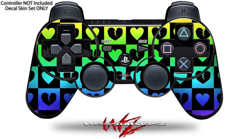 Sony PS3 Controller Decal Style Skin - Love Heart Checkers Rainbow (CONTROLLER NOT INCLUDED)