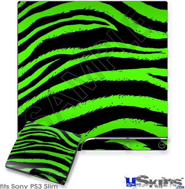 Decal Skin compatible with Sony PS3 Slim Zebra Green