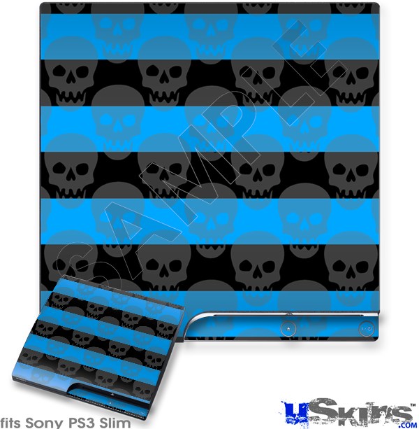 Decal Skin compatible with Sony PS3 Slim Skull Stripes Blue
