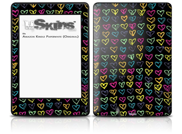 Kearas Hearts Black - Decal Style Skin fits Amazon Kindle Paperwhite (Original)