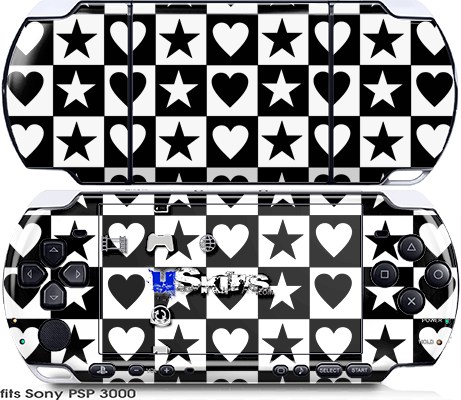 Sony PSP 3000 Skin - Hearts And Stars Black and White