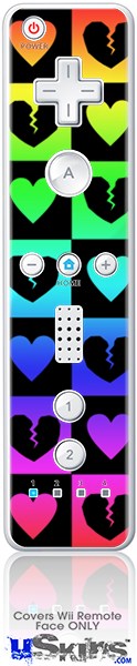 Wii Remote Controller Face ONLY Skin - Love Heart Checkers Rainbow