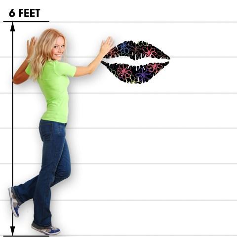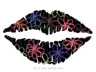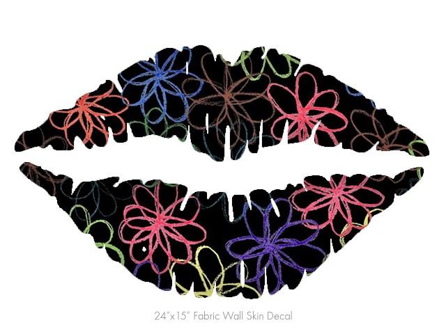 Kearas Flowers on Black - Kissing Lips Fabric Wall Skin Decal measures 24x15 inches