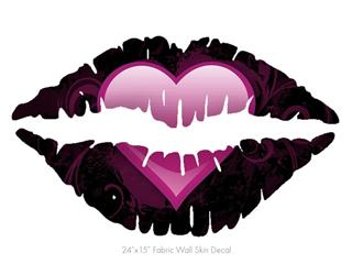 Glass Heart Grunge Hot Pink - Kissing Lips Fabric Wall Skin Decal measures 24x15 inches