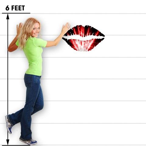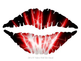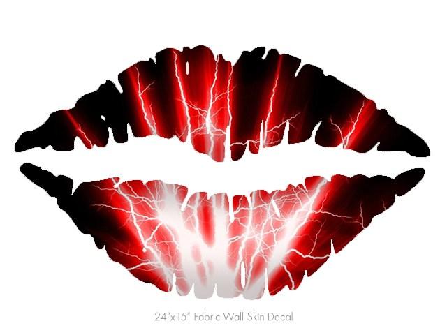 Lightning Red - Kissing Lips Fabric Wall Skin Decal measures 24x15 inches