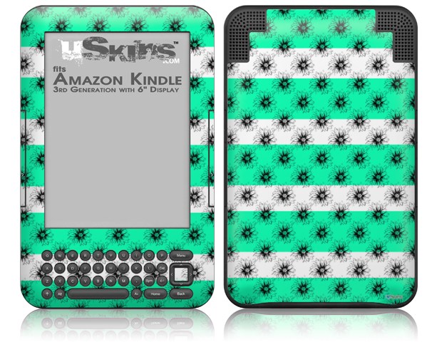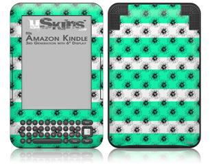 Kearas Daisies Stripe Sea Foam - Decal Style Skin fits Amazon Kindle 3 Keyboard (with 6 inch display)