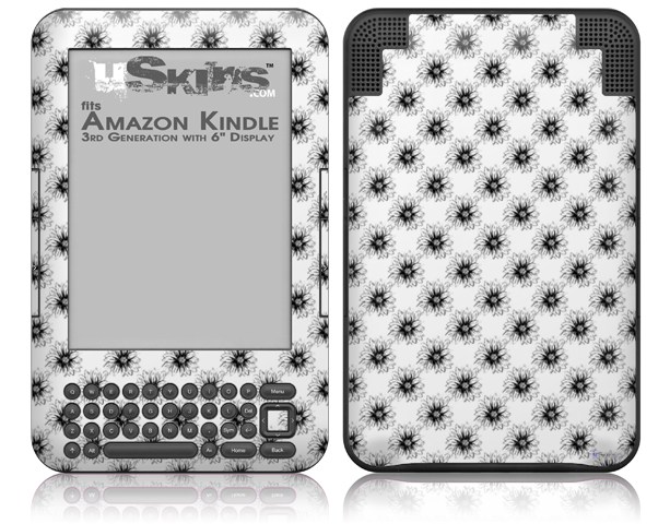 Kearas Daisies Black on White - Decal Style Skin fits Amazon Kindle 3 Keyboard (with 6 inch display)